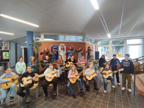 Kurz vor der Zeugnisausgabe zum Halbjahresende machten die Kinder der Klasse 5a einen kurzen musikalischen Pausenflashmob.